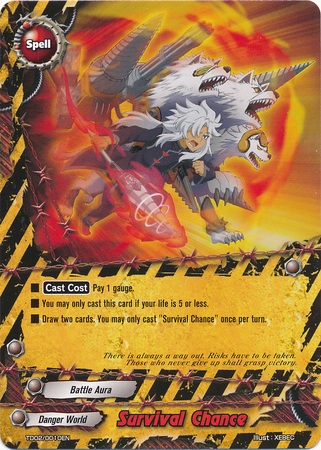 Danger World players want to have more cards in the hand, because as far as I am aware of, they do not have much of a advantage engine. You know it, I know it, and the opponent knows it. That is why they will stall a Danger World player at 6 Life, to stop Survival Chance and other abilities that triggered at low life from going live.
